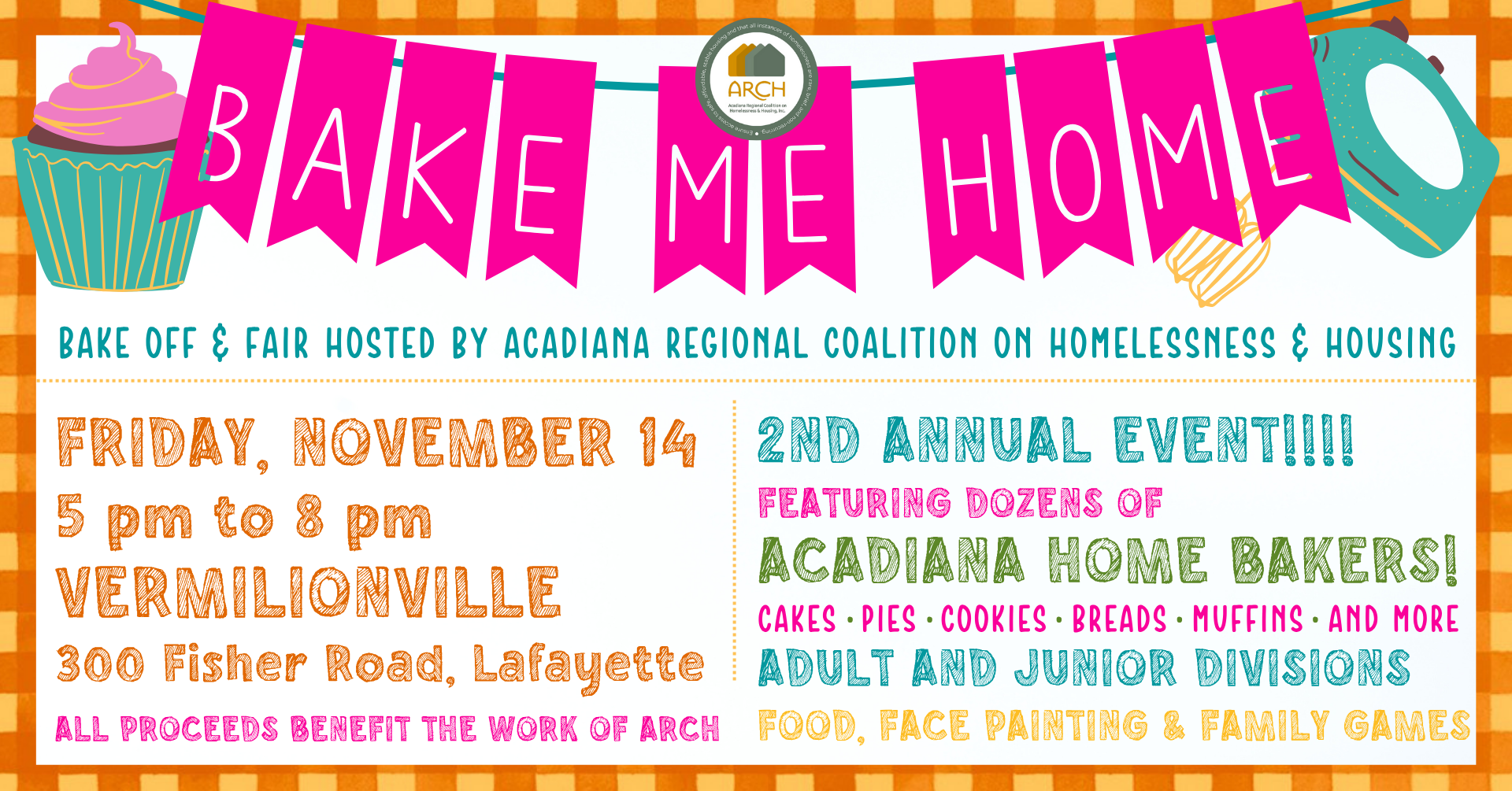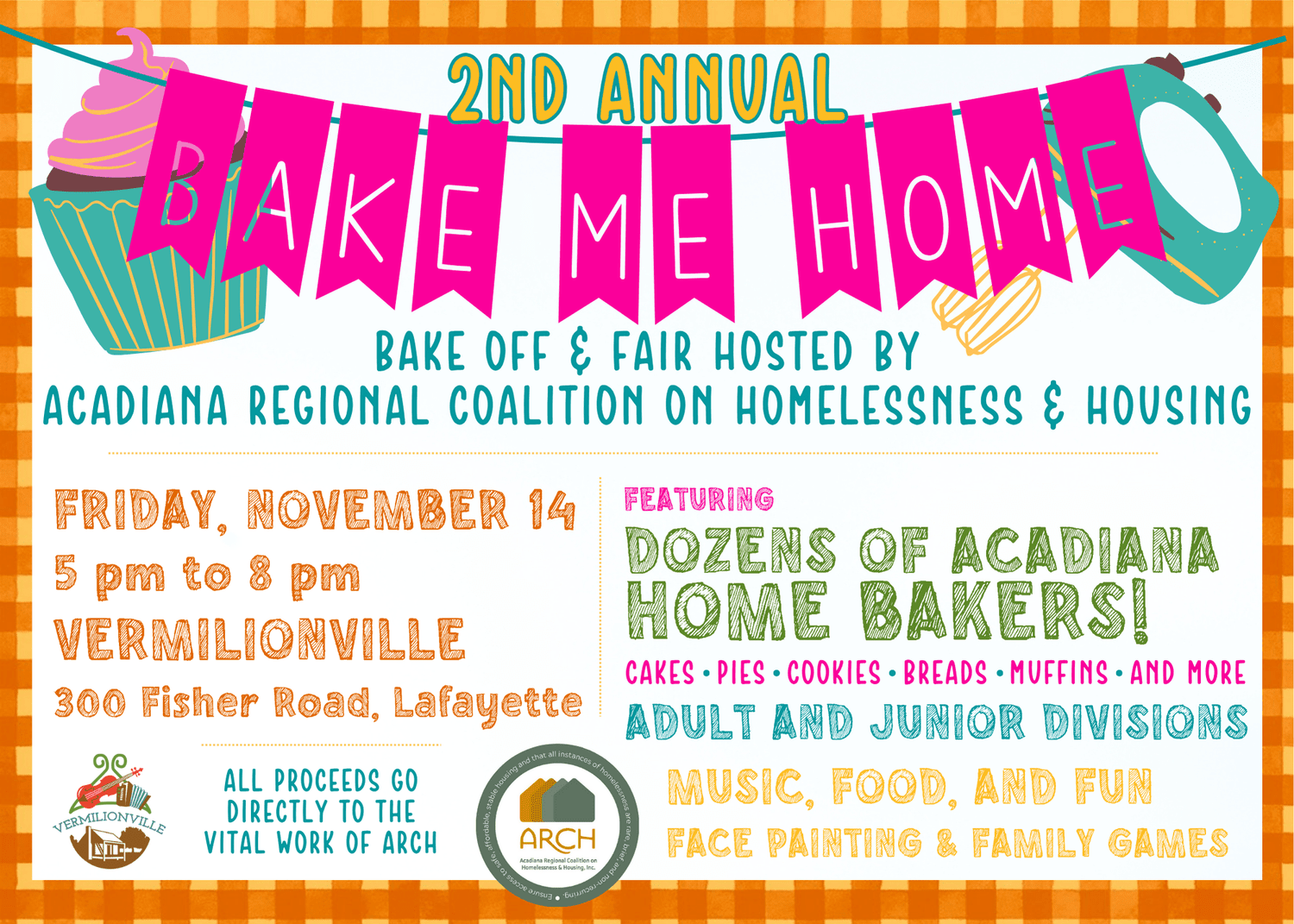 ARCH invites you to attend its second annual fundraiser, Bake Me Home! Bake Me Home is a bake off and family fair offering DOZENS of adult and junior home bakers an opportunity to showcase their items in four categories: Cakes & Pies, Cookies & Bars, Breads & Muffins, and Junior Division. A first, second, and third place will be awarded in each category by a panel of judges, and a special "People's Choice" award will be chosen by YOU!
